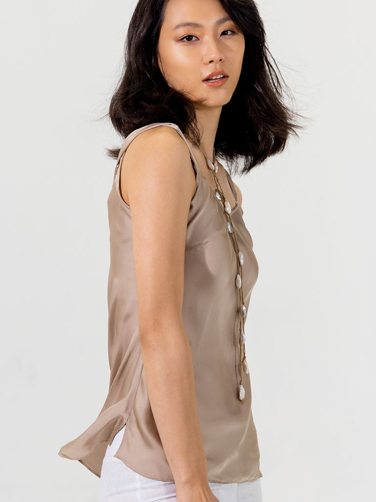 Need something to take you from day to night? A wardrobe staple that can easily be dressed up or down? Named after our lovely owner, the Elisabeth Tank is a tried-and-true yet versatile silk-blend tank that will quickly become your go-to for any occasion. A perfect layering piece that can be worn under our Reva Blazer or Azzurro Denim Jacket, and beautifully enhanced with our fabulous South Seas baroque pearls.