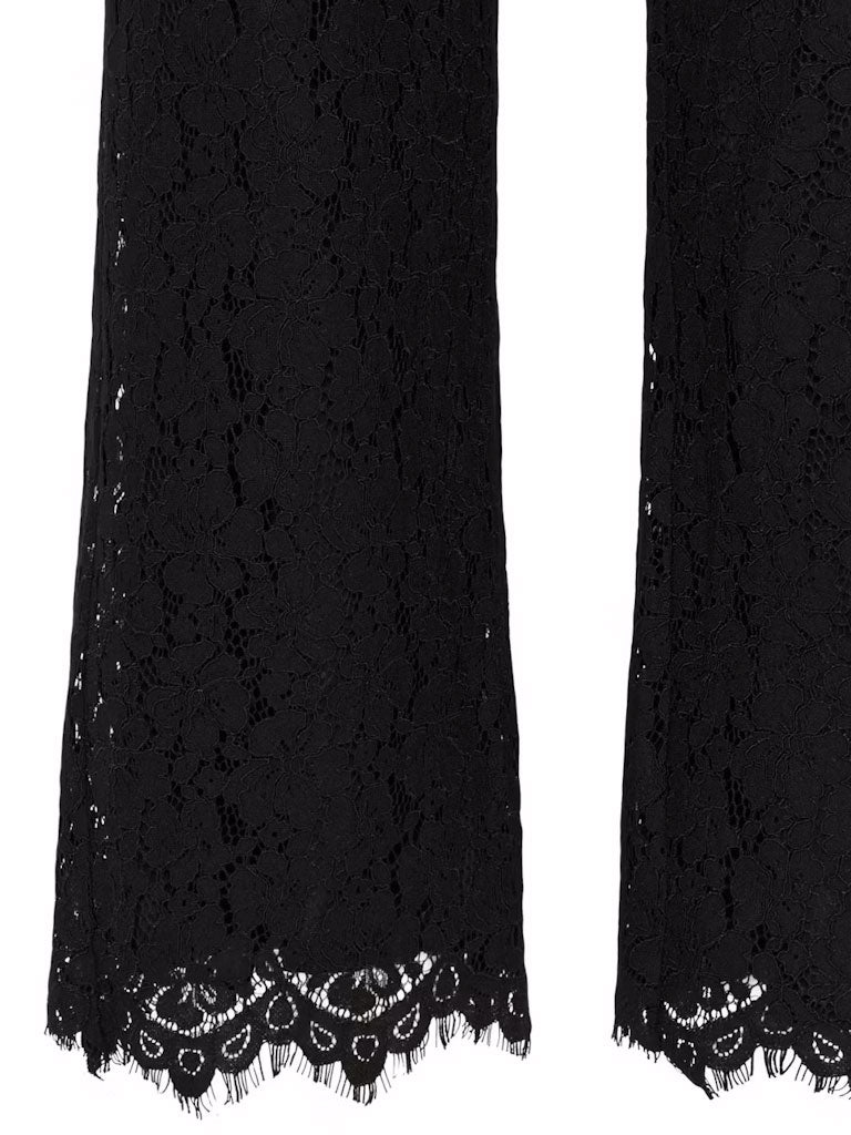 Elegant. Alluring. Unforgettable. The Viana Black Lace Pant features luxurious lace from top to bottom with a sheer black lining, hidden side pocket, and seamless flat waist for a flawless fit. The boot-cut silhouette adds just the right touch of drama — made for evenings that flirt with temptation.