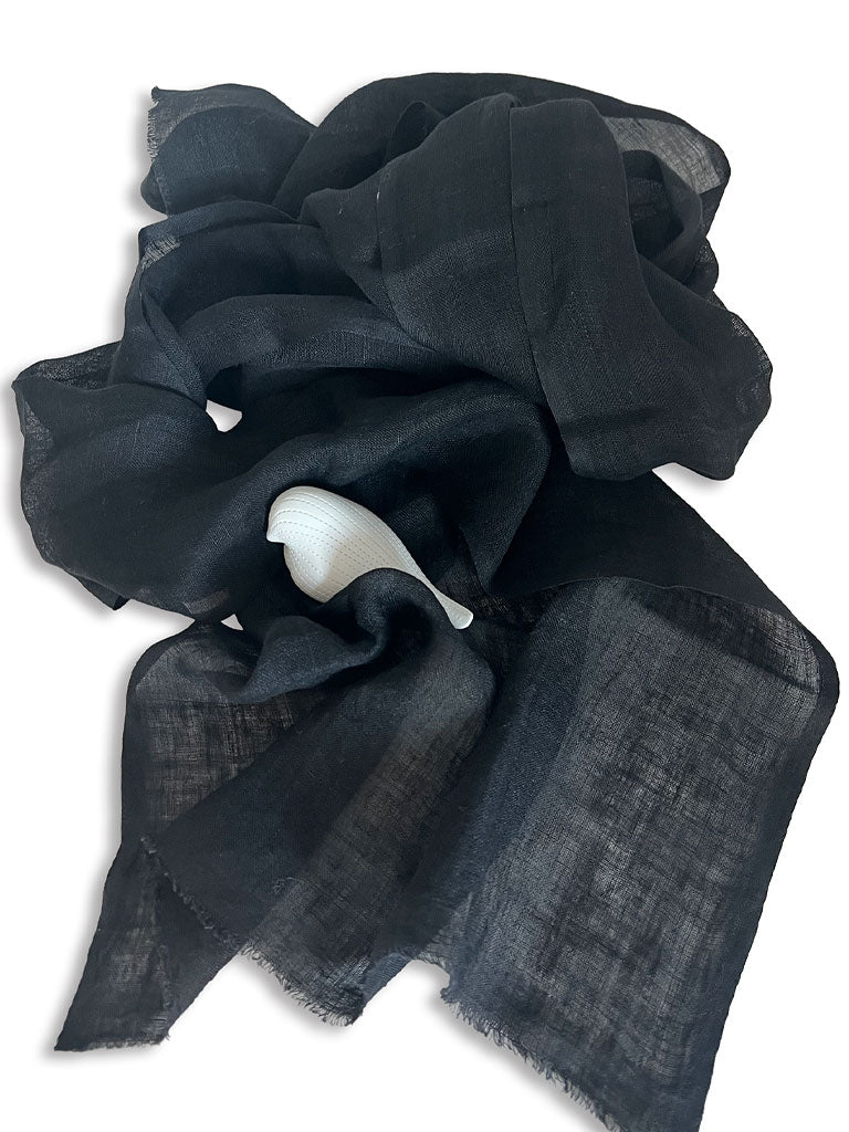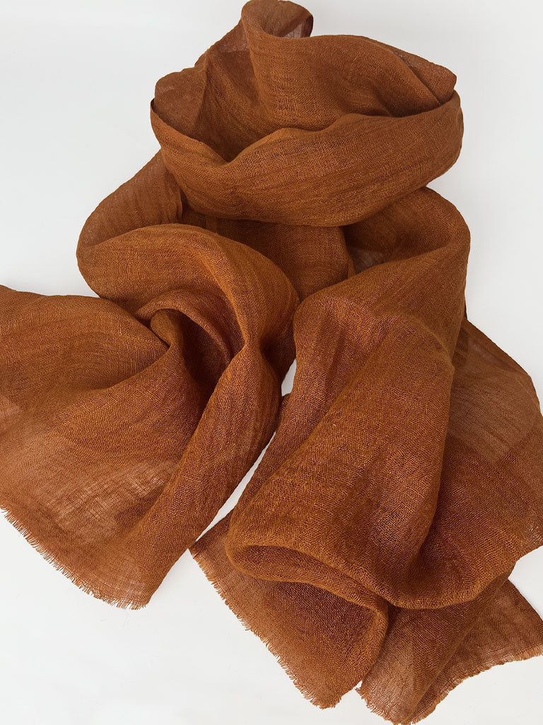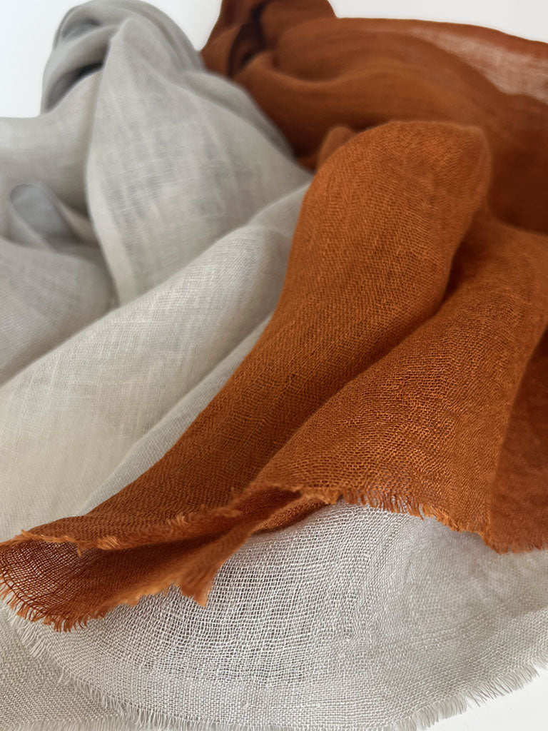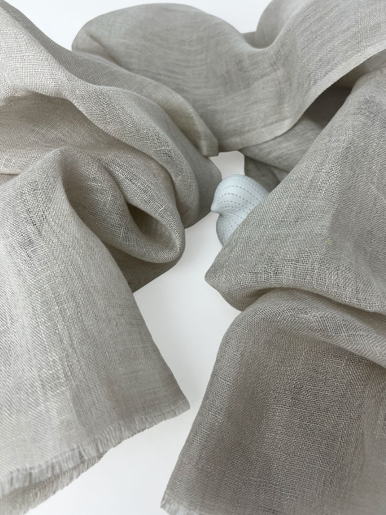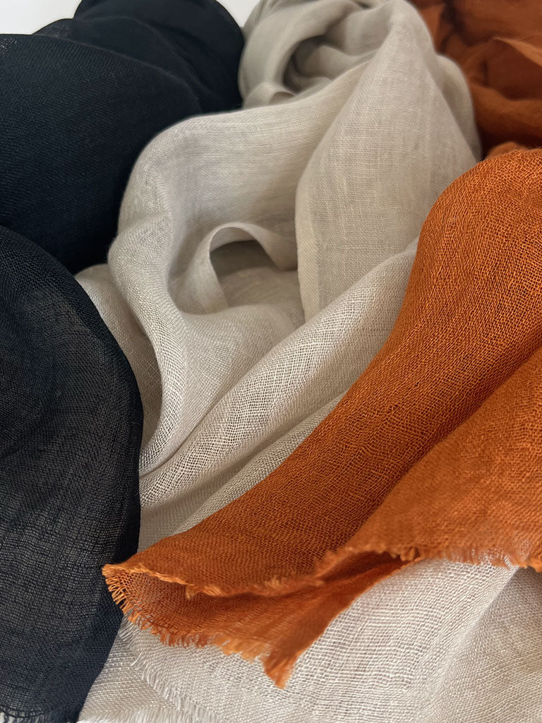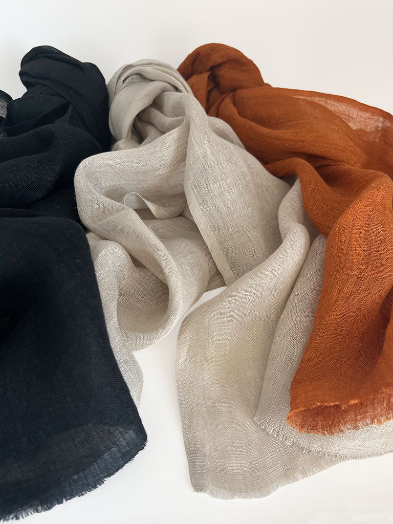 Wrap yourself in the quiet luxury of our Hand-Spun Linen Scarf — handwoven from 100% linen and finished with a soft, raw eyelash fringe. Each scarf is a unique expression of artisanal skill, with subtle variations that make it truly one of a kind.